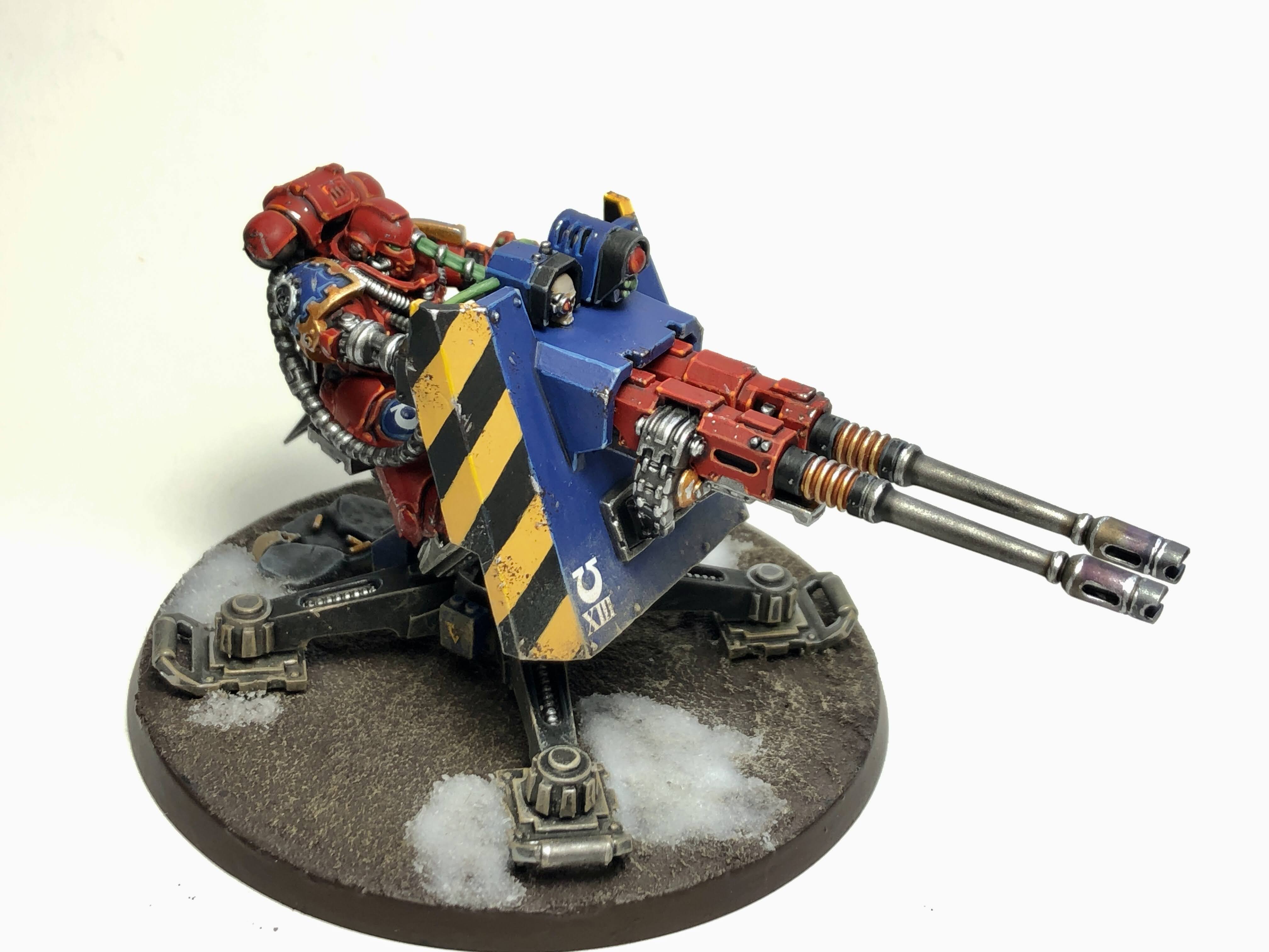 The Forge World version that mounts a laser volley cannon instead of the demolisher has some hellacious shooting output, with either a volley fire mode at Heavy 3 S9 AP-3 Dd3+3, or the overcharge fire mode which upguns that to S10 AP-4 D6, but can do mortal wounds to your vehicle if it moved. This version cannot take the siege shield and has the exact same defences but costs 35pts more - it's actually kind of a fun idea if you want to take some kind of Marine tank, and with a little luck can put a real dent in something.