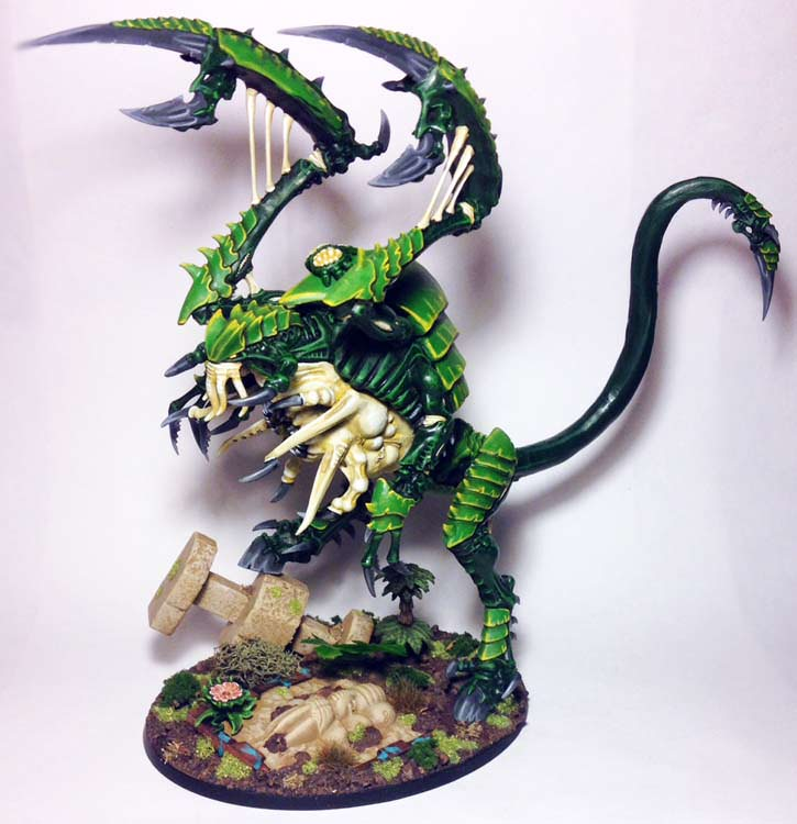 The Scythed Hierodule has remained pretty popular since its rules update and it's the competitive Forgeworld monster that was affected the least coming into 9th Edition. A good offensive forward-deploy, scything talons hitting at S10 will wound anything on the table at 3+ for some major damage, while its acid spray is very handy for hosing down screaming infantry and with Overwatch makes it a real hazard to assault without any kind of gameplan. There are a number of abilities and stratagems from the various Hive Fleets that play well into this, but at a 12" move it's probably most comfortable in Kraken where it can boost to a blazing 20" and charge in combination with Onslaught. The added AP trait also helps to make sure those bit hits cut through armour. This is a good model to invest Dermic Symbiosis, as the 4++ onto this T8 platform is a huge bump in durability.