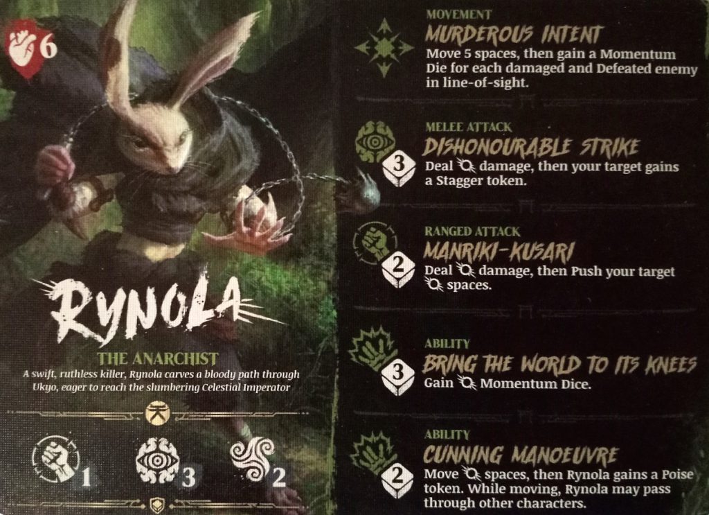 However, Rynola also loves to spend Momentum, Manriki-Kusari might only be a 2-dice (Body) attack but it comes with a free Push, which might give you a free hit ignoring Defence. You really want to land this move whenever you throw it out there.