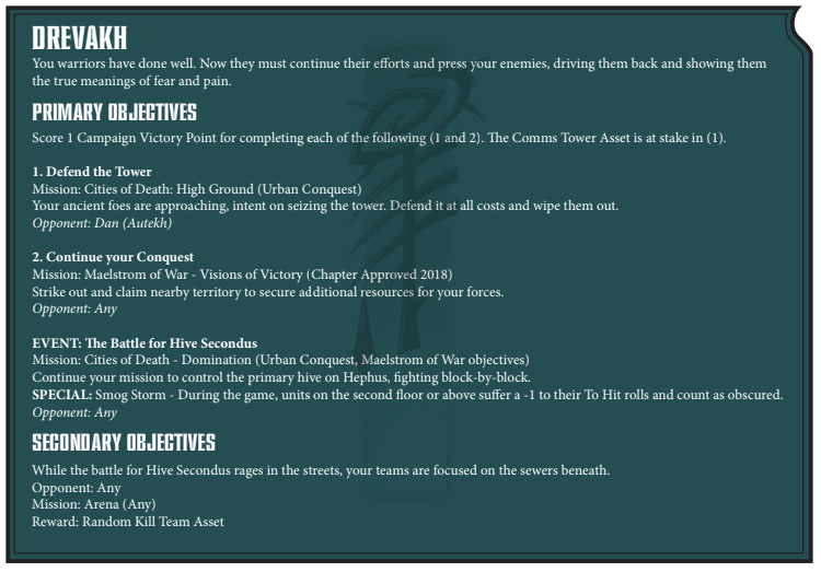 Here's an example of a player's Round 3 Orders for one of the campaign's Dark Eldar players: