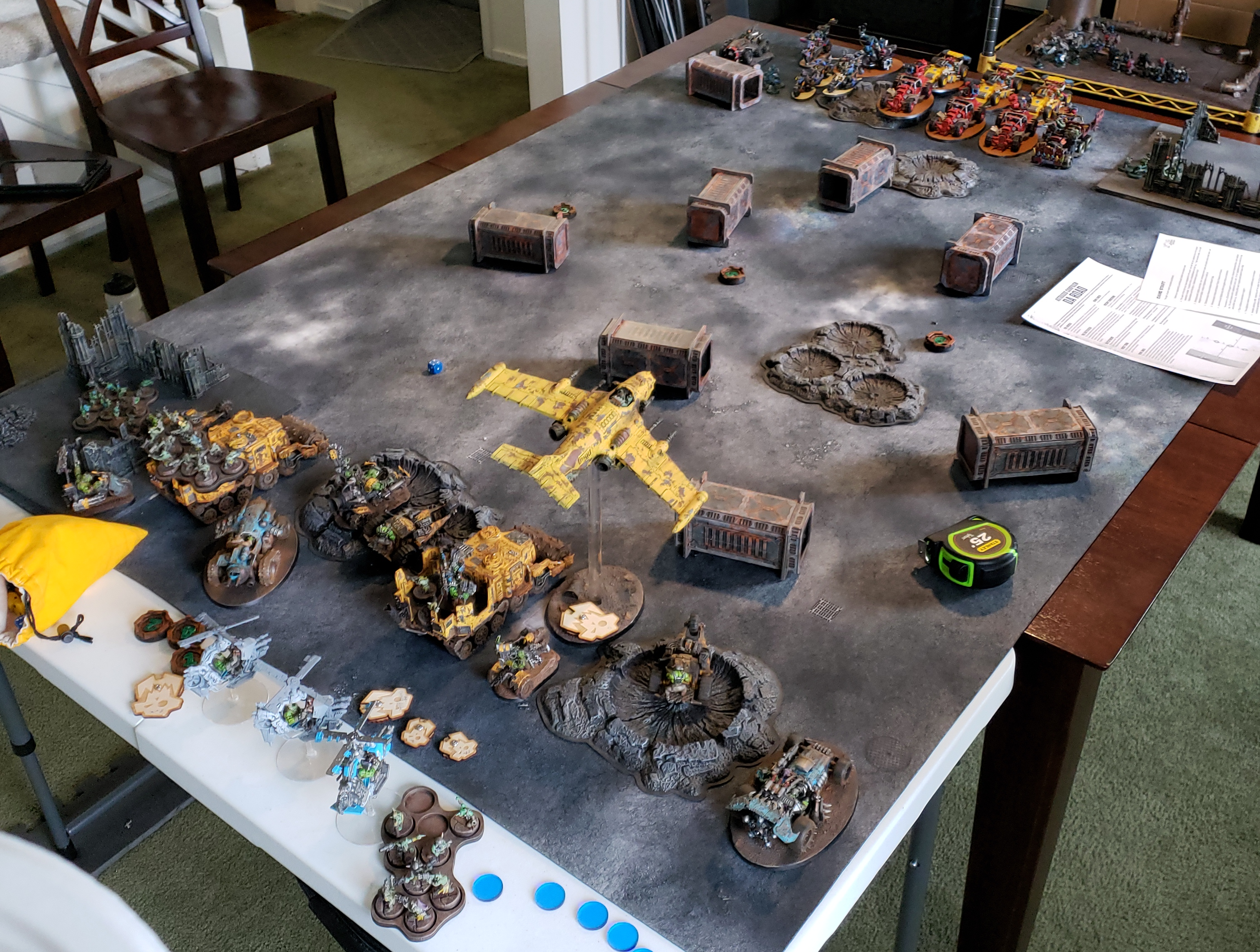 The games have been good too! We opened up Round 1 with a special multi-player event called Capture the Tower. This ended up being 4 games (2 on each planet), with a special tower asset available in each and a special mission to play for them called “Capture the Tower.” These went over really well and led to some fun games. I liked them so much I decided to include an ongoing event in Rounds 2 to 5 called The Battle for Hive Primus/Secondus, where every round players have to play one Cities of Death mission and the players who amass the most wins over that period get to fight to win the hives as campaign assets. Capture the Tower was a real blast, and we ended up splitting the two games (one for each planet) into four. Each game had between 4 and 8 players and involved multiple lead changes. We used 2-player teams for ours. If you're interested in the mission we used and the bidding system in that mission, you can find it here.