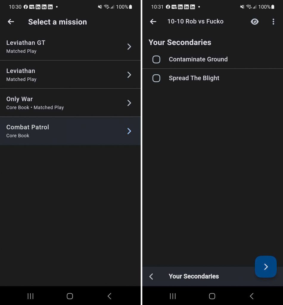If you haven't already, go download the app. It is hands-down the best app out there for tracking games of Warhammer 40k, and with support for 10th edition and the Leviathan missions pack there is no better way to track your scores and secondary objectives.