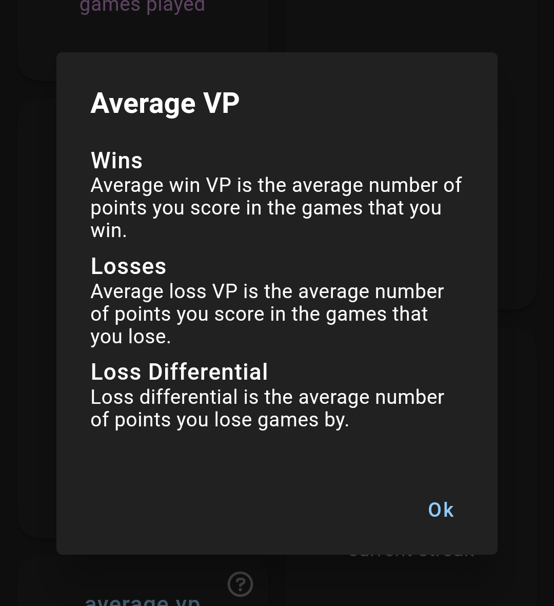 Some tooltips have been added to the stats page to explain what certain stats are and how they are calculated. No longer will you wonder what those cryptic titles like “games played” or “wins” mean! Keep an eye out for future updates with more improvements to stats and be sure to let us know what you want to see by emailing contact@goonhammer.com or hopping in our Discord to chat about it.
