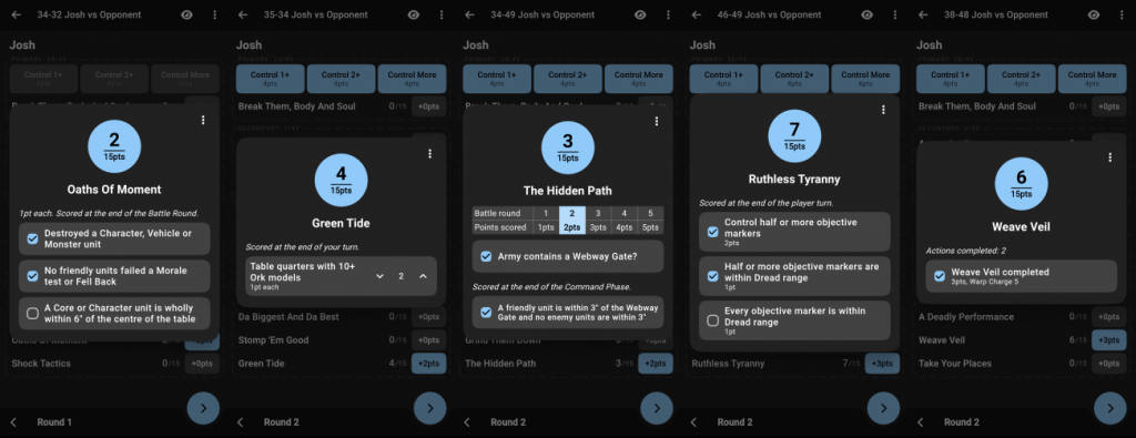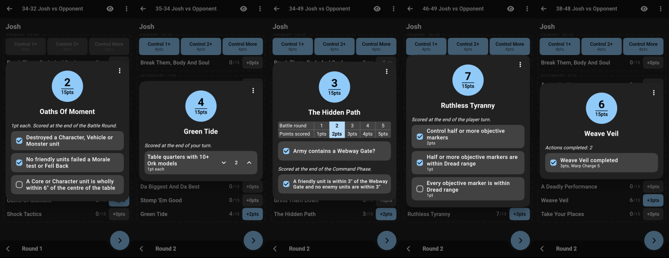 In an effort to make your life easier and mine much harder, a whopping 274 smart score entry elements have been added in this update. This includes every faction secondary, mission primary, and mission secondary for Nephilim, Eternal War, and Tempest of War. Rather than manually entering the points you’ve earned, you can simply read the options and select the ones that apply to gain points.