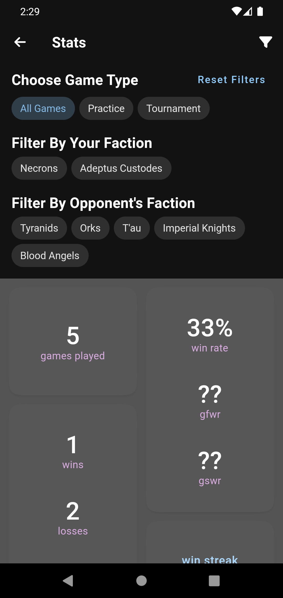 - Added some filtering options to the stats page