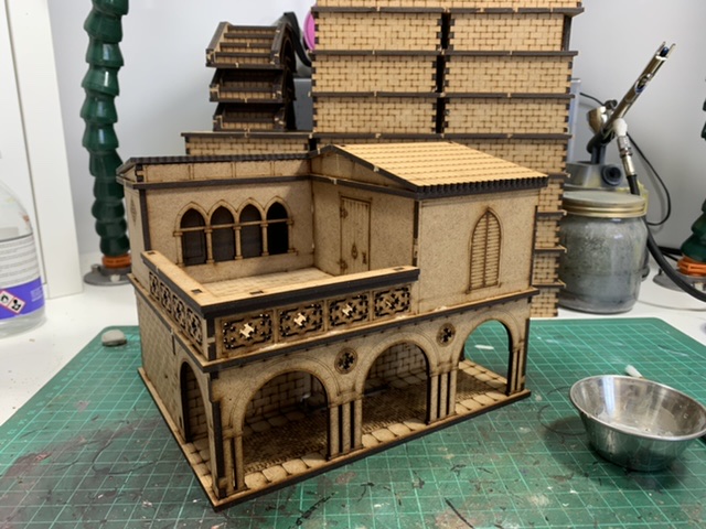 The buildings of Venice lend themselves well to being represented in MDF and with the addition of some greyboard pieces the majority of joins can be easily covered and buildings elevated that little bit more. Each building comes with it’s own sheet to add embellishments here and there, though if you’re planning on painting I’d advise leaving them off until you’re done painting the main structure as you’re unlikely to want the greyboard the same colour as your building. On the subject of embellishments, it's worth mentioning the extra etched details on the floor of each building, with wooden planks and geometric patterns being common throughout. I do plan on eventually painting the insides of the buildings, but for the time being I'll be focusing on the externals.