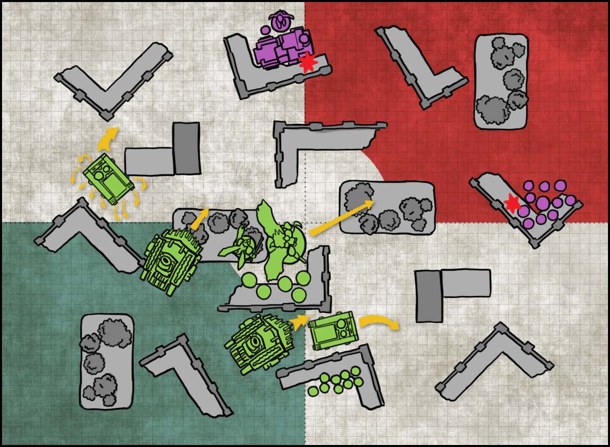- Territory Seizure: Achieve positional goals relating to the centre of the battlefield and table quarters.