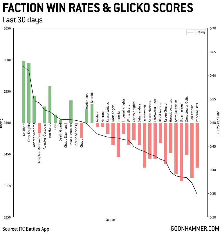 The full stats update is over in today's Meta Analysis, but a chart that's particularly useful for providing a quick snapshot of how factions have been doing recently is the one below showing recent changes in Glicko scores:
