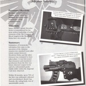 Ordered to hold an Astronomican station from a horde of Orks while reinforcements could arrive, Leonatos succeeded- but at too dear a cost. 90% casualties, and the loss of a precious Legion relic stolen by the Orks. Banished from the Legion, Leonatos' only hope of redemption comes from recovering the lost Sword of Belarius.