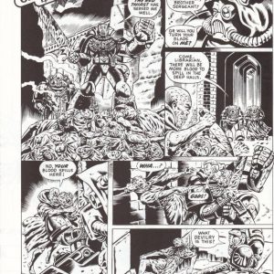 Pugh had started freelancing for comics on the side in 1977 to supplement a career in advertising, making the jump fully into the medium seven years later. Another artist who'd cut his teeth at 2000 AD, Pugh was an illustrator for strips featuring Sláine, the Celtic barbarian. He also worked on a number of Disney and SEGA comics. Later in his career he was a colorist for a football-themed comic in the Daily Mirror.