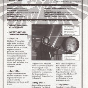 Tenebrae, concerns the musings of a planetary governor of a world being invaded by the legions of Chaos, and would go on to see publication in 1999’s