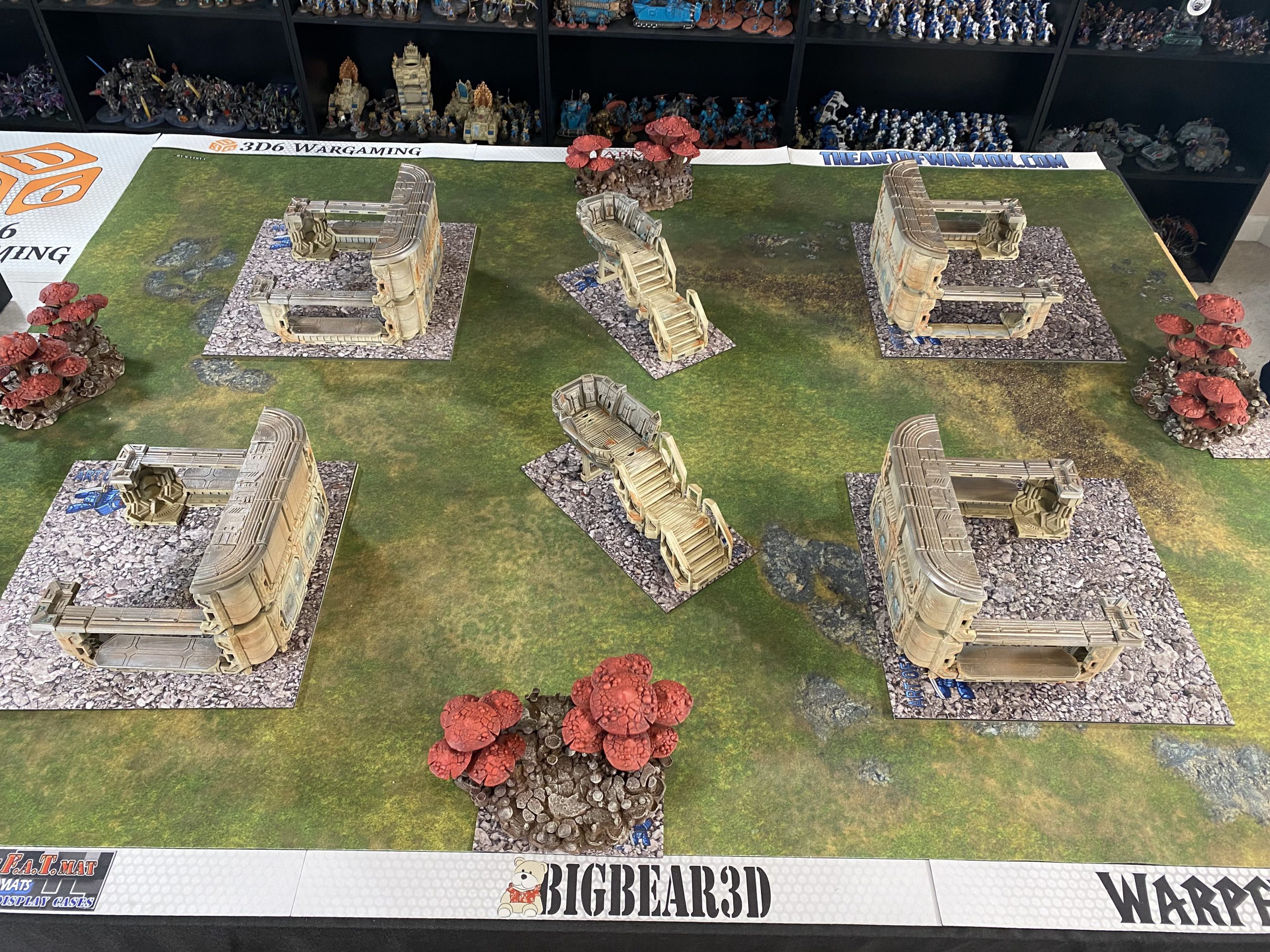 The players will be playing on the games workshop terrain layouts, as seen below, and each game has had a different mission randomly rolled for it.
