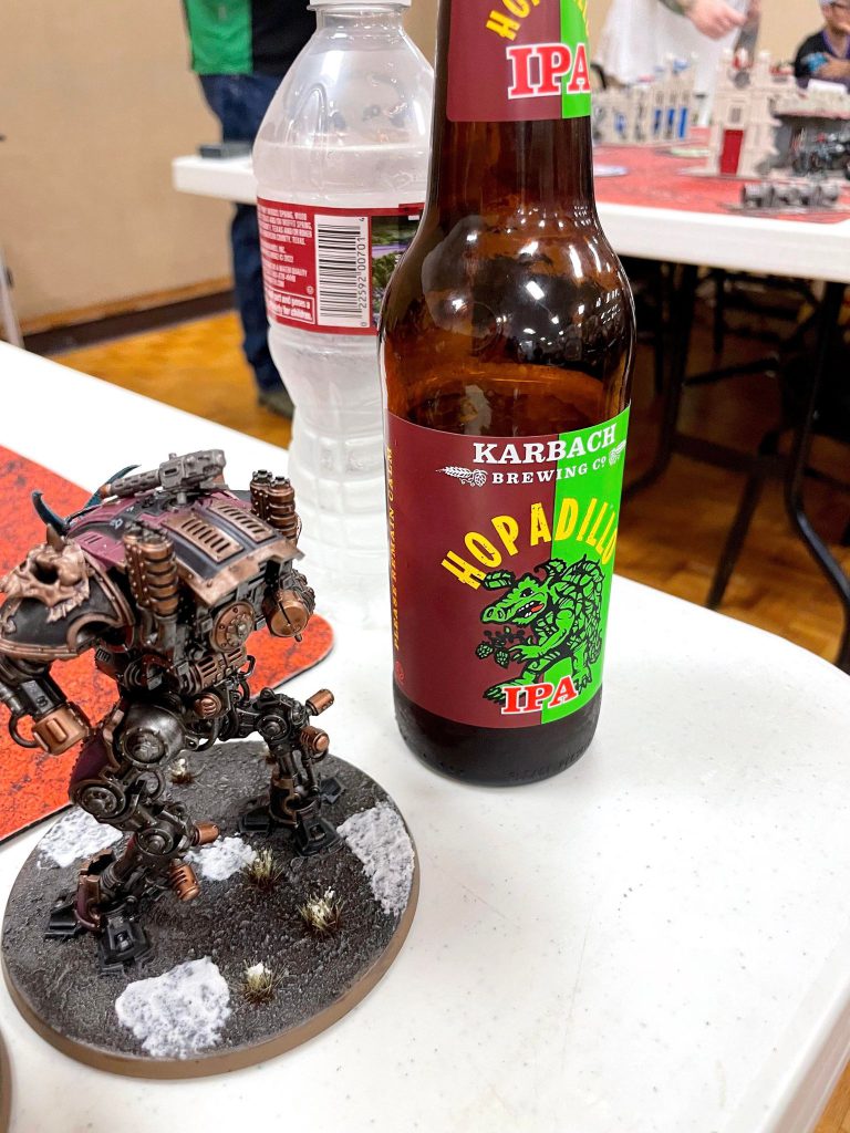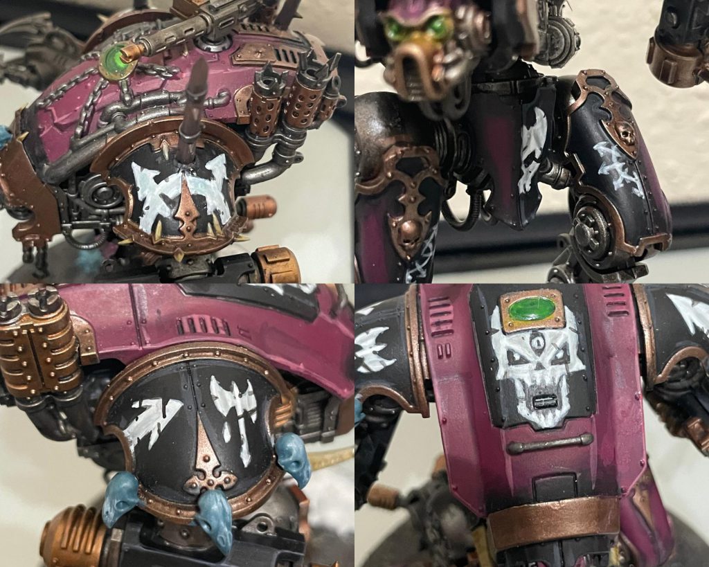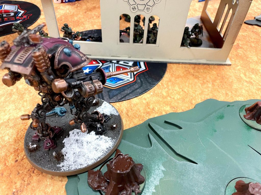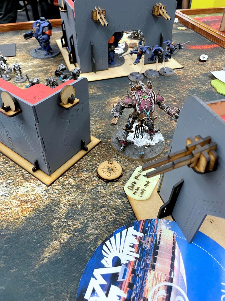 Relic Contemptor Dreadnought [8 PL, -3CP, 195pts]: Cyclone missile launcher [25pts], Merciless Logic, Stratagem: Hero of the Chapter [-1CP], Stratagem: March of the Ancients [-1CP], 2x Twin volkite culverin [30pts]