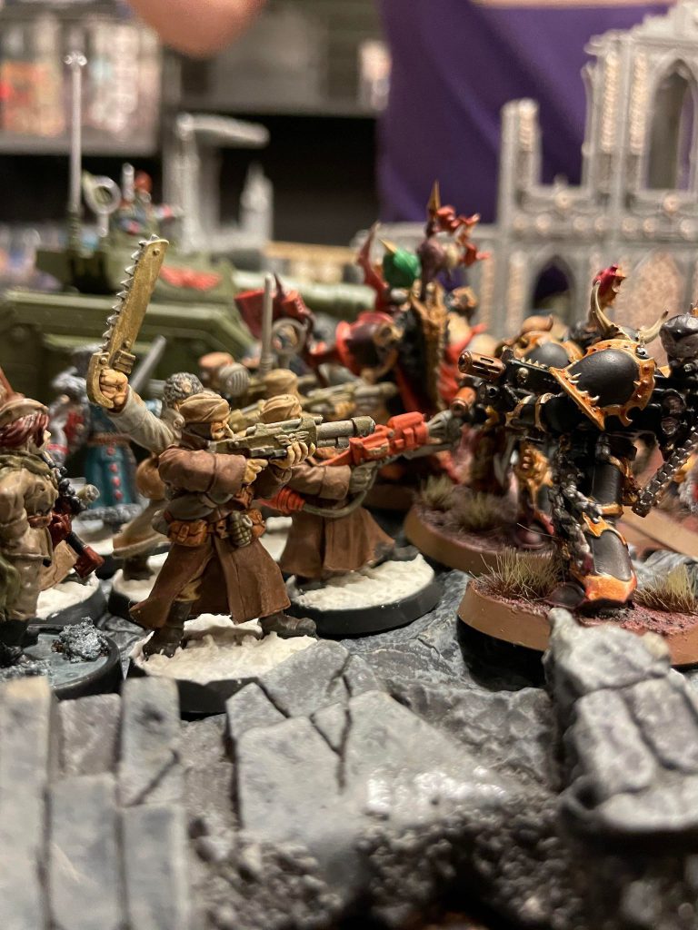 By the end of this game, I was rooting for the galaxy’s bravest Taurox. IT was pretty beat up from some shooting by my Venomcrawler early on, but thanks to Stratagem support was able to stay in the fight at full bracket and throw some shots out. By the end of the game, the Taurox makes a glory charge into the cultists holding one of my objectives just because he doesn’t like the look of my cultists, all smug over there.