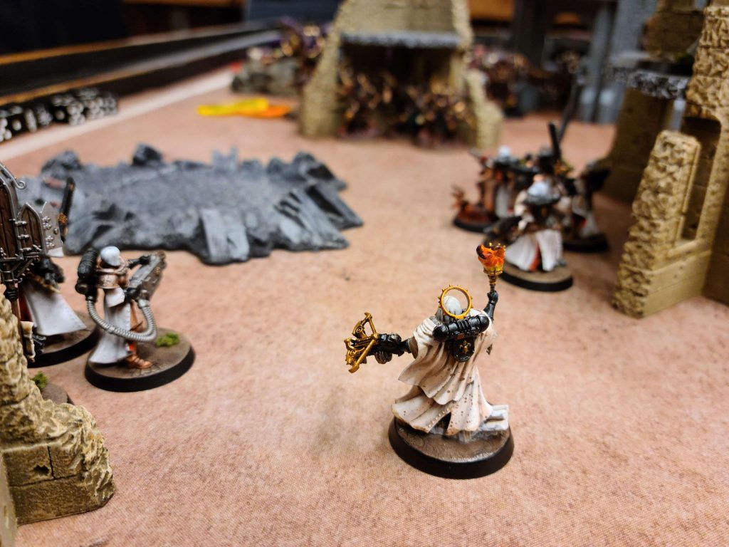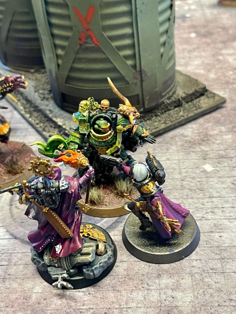 Hexogrammic Ward being able to nullify one attack on the Daemon Prince Malioch would’ve likely gone down. He survives though, and the Helbrute flames away a straggler squad of battle sisters.