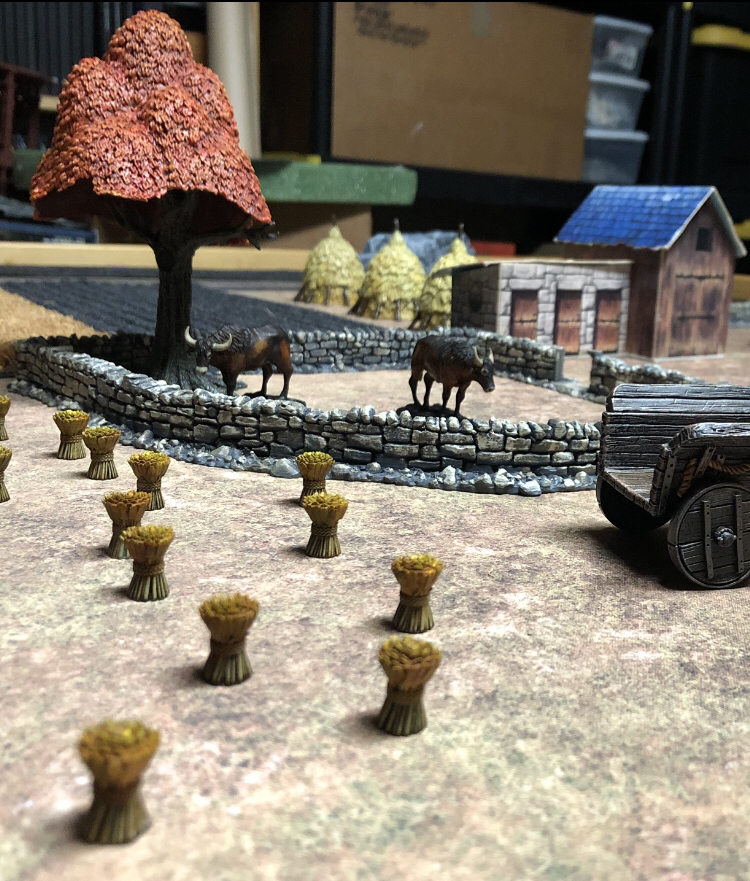 The Baron's War boards (the advice to have twelve pieces of area or LoS-blocking terrain on the standard board still remains). One of the impacts of this is the suggestion that your terrain be based to prevent ambiguity there. As one of the people whose responsible for maintaining a club's terrain that's expected to be potentially useful for multiple game systems over a myriad of both historical and fantasy periods as well as a number of potential different backgrounds of grass, muddy streets, and so on. I'm not a fan, but from a clarity perspective I get it.
