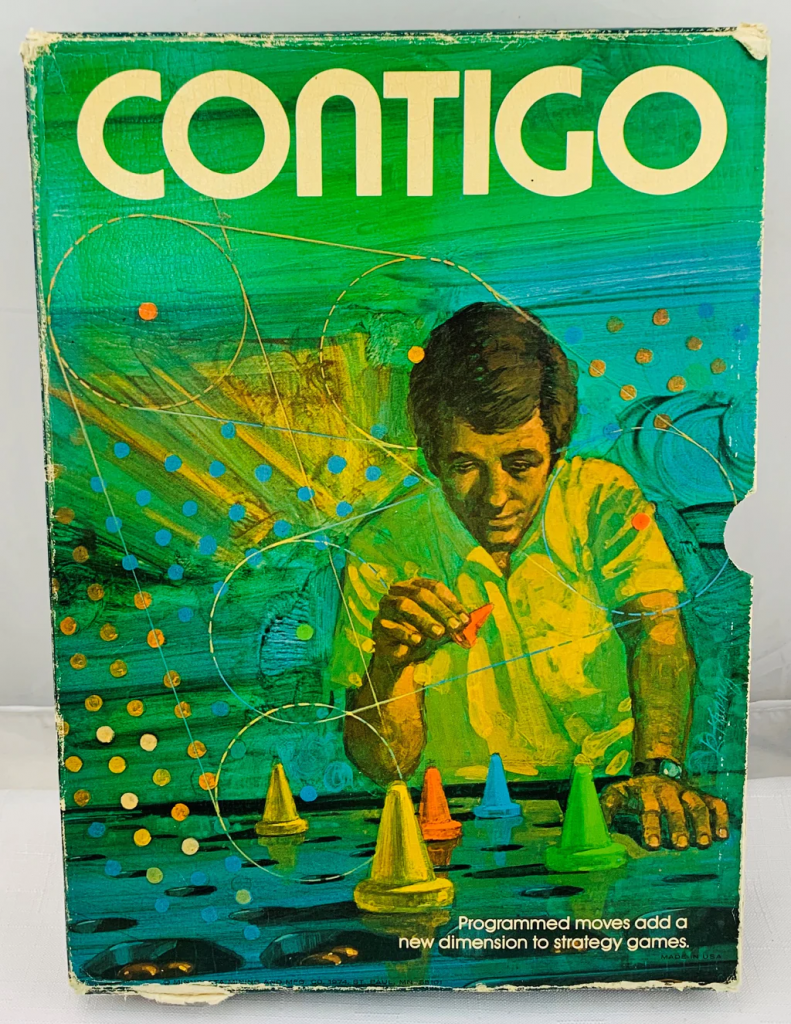 This 3M Bookshelf series game was released in 1974 and is kind of like a mix of checkers and mancala. It’s designed for four players (but can be played with fewer with a little bit of rigging) and has players moving pawns to align them across a single six-space row. It’s a movement-based game in which players use tokens to mark how far they’ll move their pieces, shifting tokens around the board to adjust their movement and affecting their opponent’s movement at the same time. It’s a fun little game.