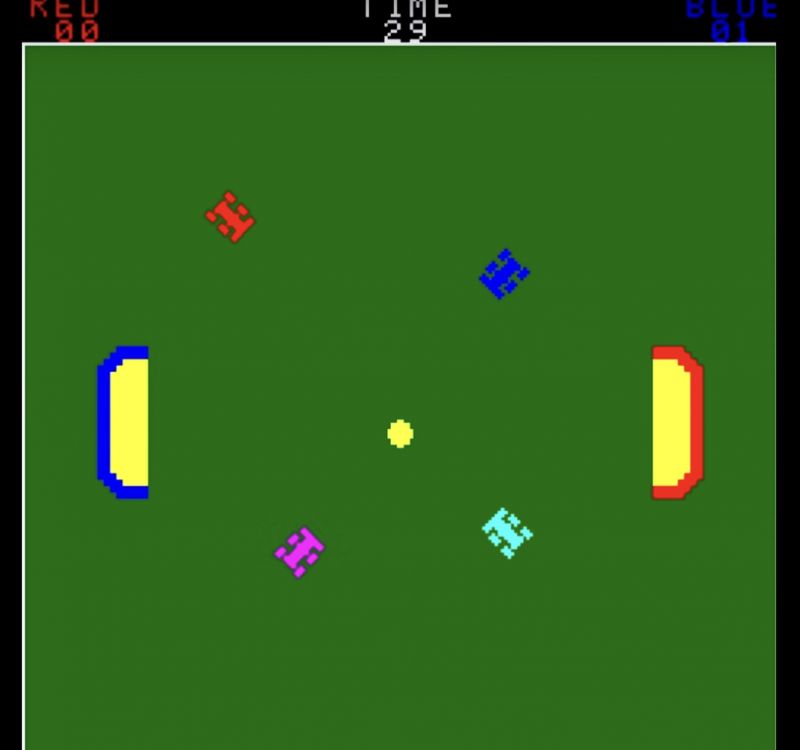Exidy followed up its controversial Death Race title from 1976 with this evolved form of the game, which traded out civilians to be squashed for a ball players could nudge into a net with their cars. It was basically the seventies version of Rocket League and it was just as fun then as it is now. Car Polo was one of the first full-color arcade games, giving players four different colored cars on a green background and featured a custom four-player stand-up cabinet with steering wheels for controls.