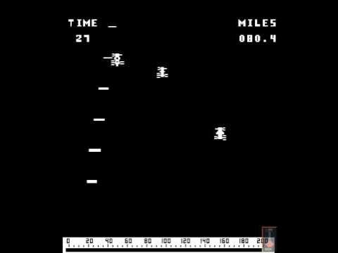 Atari’s Super Bug was another true innovator in the top-down racing game genre, this time featuring something which had never been done before: A scrolling screen with a dedicated map. Players drive the titular yellow VW bug around a racetrack covered with obstacles like oil slicks and must get to a checkpoint before time runs out. The scrolling effect of the game really stands out when compared to other racing games of the day, which tended to opt for simulated scrolling effects to suggest motion rather than having an actual map in the game which players could learn and improve on.
