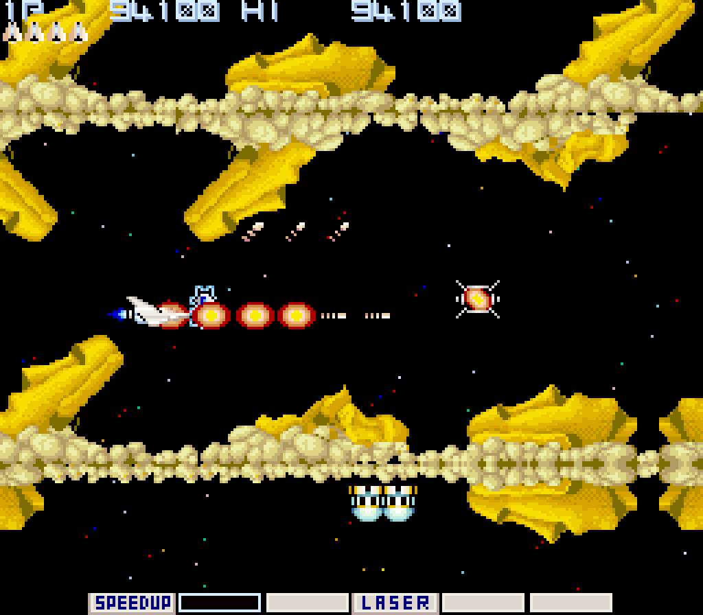 Konami released the first entry in their side-scrolling space shooter series in 1985. It's a game which goes heavy on power ups, giving players a mix of different weapons and additional pods/orbs to shoot with as things get crazier - and things get pretty crazy.