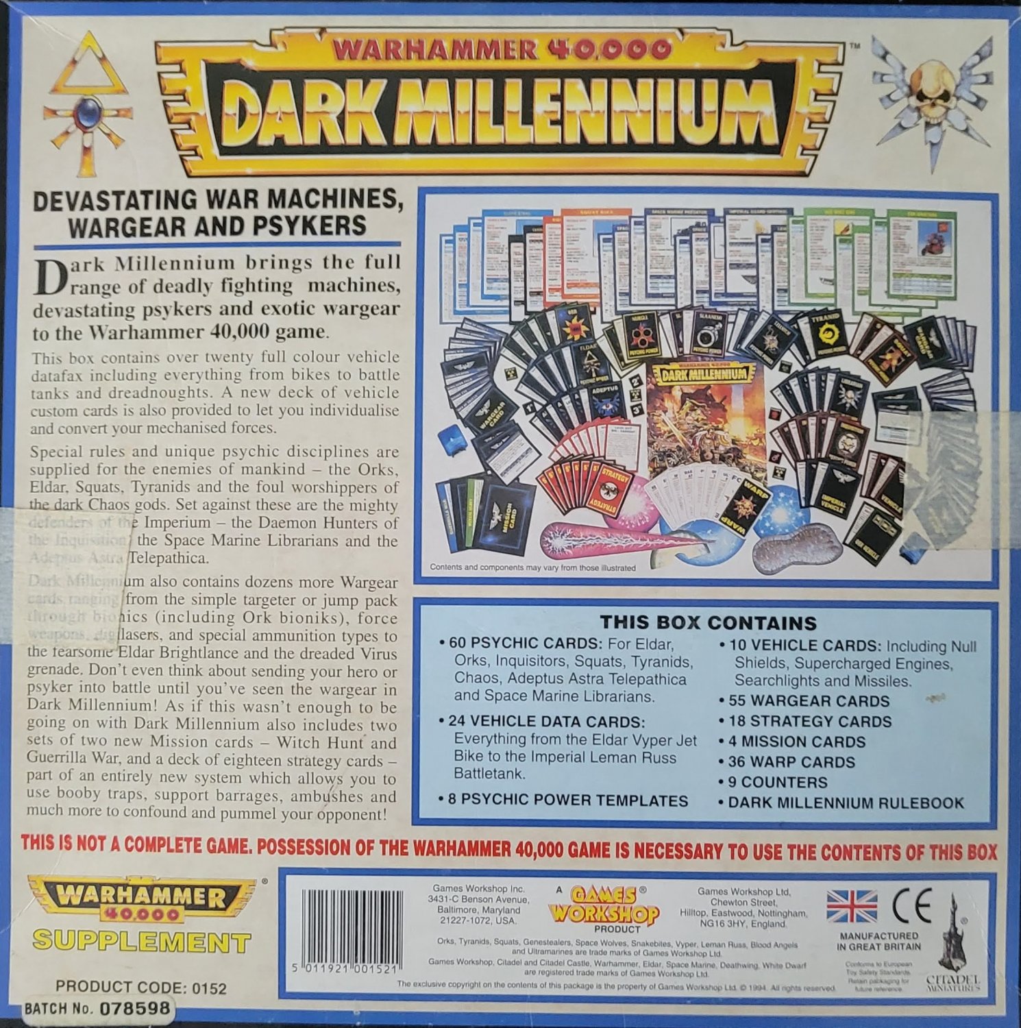 The first major expansion to Warhammer 40,000’s second edition, Dark Millennium added a number of key mechanics to the game, including the Psychic phase and psychic disciplines and a warp charge system, new wargear, and Stratagem Cards to influence games. Dark Millennium was sold as an add-on for the game but was basically the default way to play and its mechanics would be brought back for the game’s 6th and 7th edition releases. When I started playing Warhammer 40k in '96 you basically had to have this expansion to play the game.
