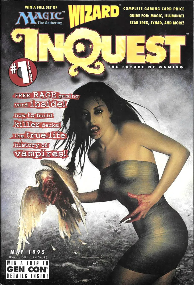 Published by Wizard Entertainment starting in 1995, InQuest was another price guide magazine, albeit one focused much more heavily on tabletop games, particularly the rapidly-expanding collectible card game market, with Magic: the Gathering as its primary focus (though it covered other games often). Along with Scrye, the magazine would become a staple of the genre and a key source of news. I used to buy every issue of InQuest as it came out - it was essential reading if you were into Magic in the mid-to-late 90s and their irreverent humor hit 14 year-old me just right. They also used to feature some incredible commissioned cover art from some of the best artists in the business.