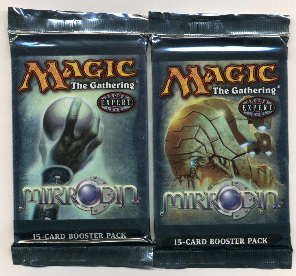 In 2003 Wizards of the Coast released the Mirrodin set, introducing us to both the artifact world of Mirrodin and the game’s new frame treatment. This new treatment would define Magic’s “modern” era, with cleaner, easier-to-read cards featuring more pronounced text boxes. Mirrodin introduced Equipment to the game, as well as the broken Affinity mechanic, and its follow-up sets would add Indestructible and Scry.