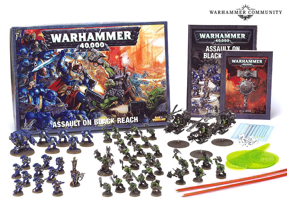 Assault on Black Reach was the starter box for this edition, and it featured a showdown between the Ultramarines and Orks. When I look at the models for this set, I can’t help but feel like it’s peak Warhammer 40k. Also, it’s the only place where you could buy Ork Deffkopters for, like, a decade. So it was a pretty popular box.