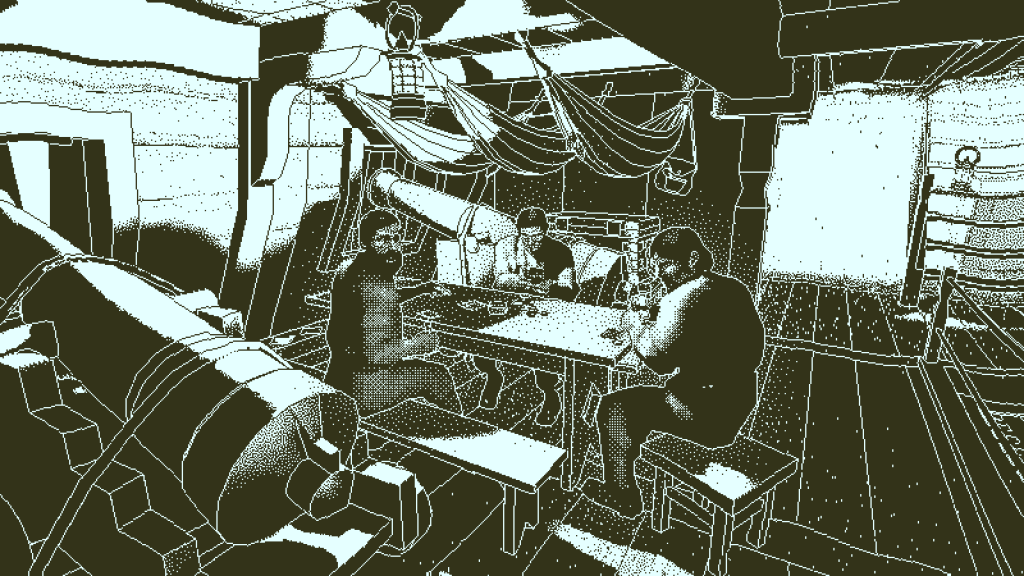 Graphically, its monochrome style seems somewhat simple at first, but it’s a perfect fit for the setting of the game. And the mystery it presents you with is perfectly paced, giving you just enough information to make steady progress while still requiring you to really think not only about the information you’ve learned, but about what everything you know means in the aggregate.