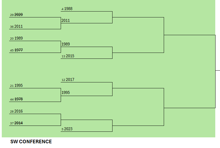 Finishing 2014 vs. 2016 means we've closed out the games in round 1 of our Southeast Conference bracket, and we can review the results and move on to the final conference.