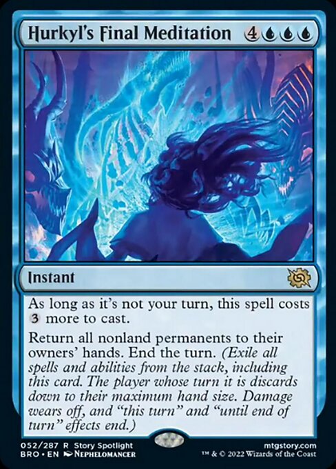 FromTheShire: It's about damn time. The card advantage is solid if not too exciting, and seems a little easy to whiff on. My biggest complaint here is that this perpetuates Drafna being perceived as better than Hurkyl, who actually created a whole bunch of the spells he is attributed with. For god's sake, she was the first recorded magic user on the continent and died in battle after blowing up several of Mishra's dragon engines, and yet here goes Drafna to see way more play in my opinion while she plays the advantage game. Outrageous.