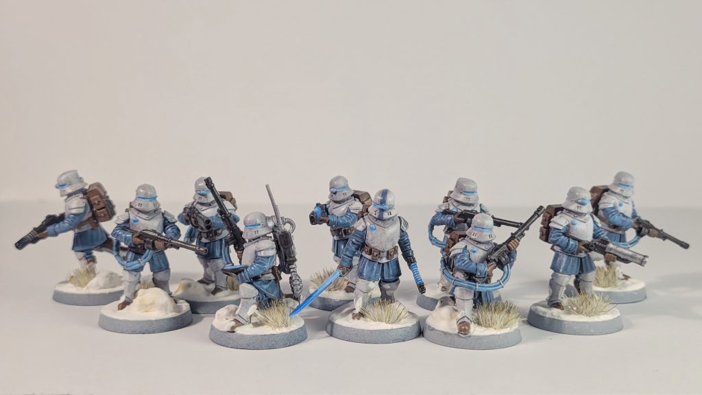 These have been constructed using a variety of 3d printed parts and are inspired by snowtroopers and arc troopers from Star Wars.