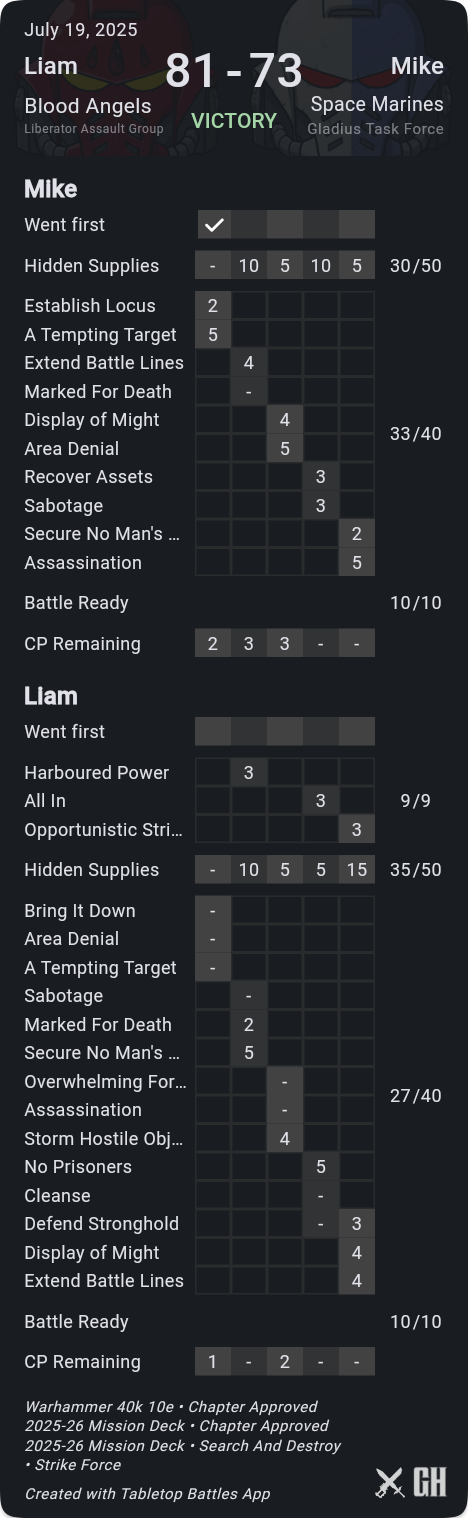 On the table, I've mostly played Aeldari and Blood Angels this year, with a game each of Imperial Knights and Custodes. It'll be more Blood Angels for the next few weeks, as we're attending the summer edition of UKTC's ITT event in Birmingham. To that end, I took them out to the Into the Maelstrom RTT on the 19th of July.