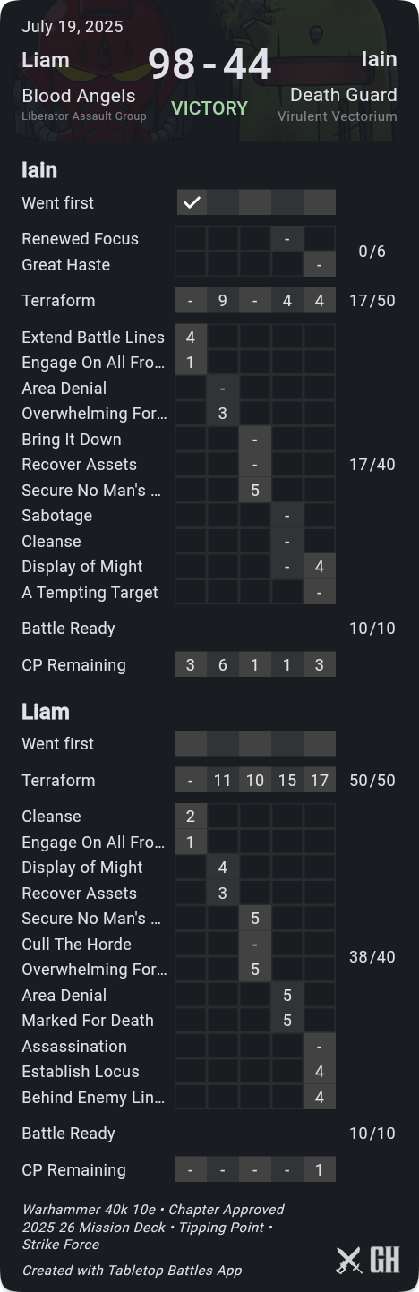 Opponent: Iain, Death Guard (Virulent Vectorium)