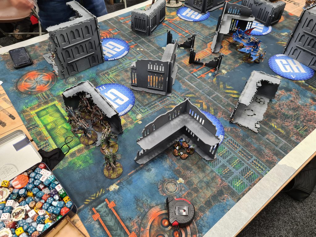 Tom finished the event in 72nd place with a 3-2 record, losing his last game against a vicious Deathwatch list using the new Army of Renown. His opponent Jon was coincidentally my first game at Coventry last month. This time he was playing the Kill Team Strike Force, and it seemed to be working well; his game 3 was right next to mine, and I watched him annihilate a capable Ad Mech player in short order.
