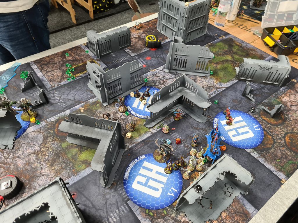 With the list redesigned thus, I was relying mostly on my prior practice with it to see me through a changed world with a new meta I hadn't yet played in. I was keeping up with Competitive Innovations and our competitive chat in the Goonhammer discord, so I had a decent idea of what was good now, and I felt like the Talos had good play into it - as well as expecting the likely mirror match, especially when lists went up for the event and literally dozens of them appeared in the numerous Drukhari armies taking the field. Luckily for my first match I had none of them, and was instead facing Grey Knights, an army which is objectively very strong but which in my experience has a fairly poor game into Talos which neuter their main shooting output from the Dreadknights. Let's talk about how that went.