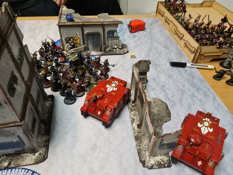 Palatine [5 PL, 85pts, -1CP]: Bolt pistol, Power sword, Relic: Blade of Sacrifice, Stratagem: Exemplar of the Order [-1CP], Warlord, Warlord Trait: 2. Righteous Rage, Warlord Trait: 3. Martyr's Strength