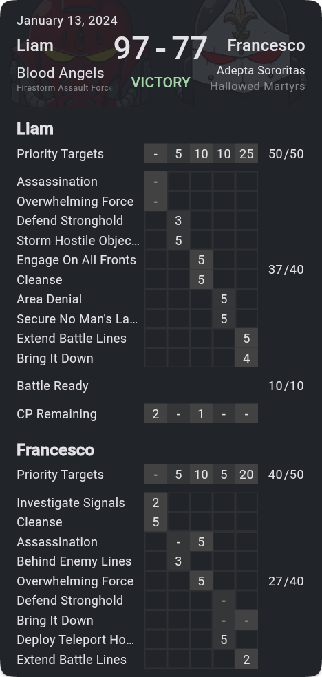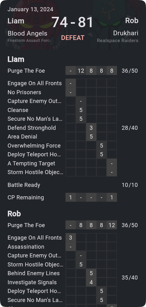 - Leicester Super-major 2023 - Blood Angels - 3 wins, 2 losses
