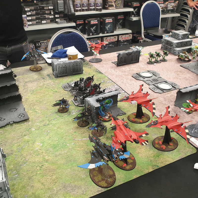 You may recognise that Harlequin detachment from, uh, about five minutes ago. Seeing it in skilled hands (which to be fair, has happened before back when I played Stephen Box at Battlefield Birmingham, but it’s been a while ok?) really brought home how useful it is. In particular, having snipers available is fantastic in a faction which often struggles to deal with characters buffing things. Also, good news: Death Jesters paint up really quickly, as I’m finding out!