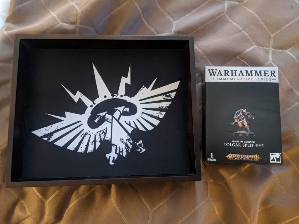 I picked these up at the GW booth. I'm excited to paint Tolgar for my S2D force and the dice tray was something I couldn't pass up. Credit: Michael O "Mugginns"