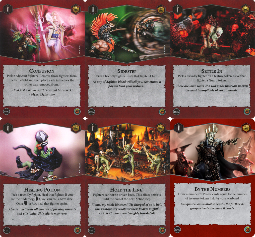 Blazing Assault set the bar high with an absolute fire power deck, but Emberstone Sentinels is no slouch. Confusion and Sidestep are valuable positioning cards on their own, but their value jumps even higher when you're using them to secure treasure tokens to score objectives. Defensively, Settle In is a guard ploy that is fairly flexible – it can be used for fighters on treasure or cover tokens, but also Aqua Ghyranis tokens. Healing Potion is always solid if your fighters are able to take a hit without crumpling and likewise Hold the Line can be played prior to your opponent's last turn in a round to make it even harder for them to disrupt your end phase scoring. By The Numbers can lead to some very exciting power steps where you draw 3+ cards in one go provided your warband has some push/move tech.