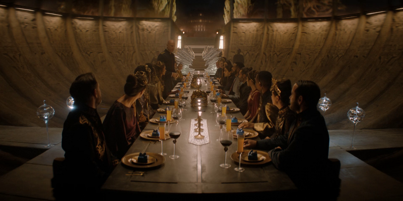 In general the production values are, while somewhat finer than the SyFy channel miniseries of the early 2000s, not great. It looks plain. The thing about Dune, and something that Denis Villeneuve seemed to grasp intuitively, is that everything in that universe has to be huge and weird. Not in a Warhammer way, but monolithic and inscrutable just the same. Every shot should have something massive and imposing in it that doesn’t seem to do anything, or it doesn’t look right. If you aren’t building your sets to the scale of ancient Egyptian colossi, don’t even bother. To give credit where it’s due, they did actually build those sets instead of using a computer, but it doesn’t help much.