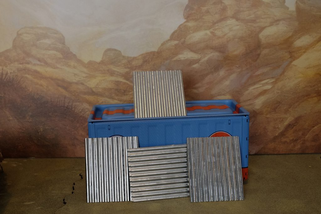 This is the one that really put me on the path to begin with. Cheap, effective, line of sight blocking terrain that comes pre-painted to what I’d call a “good enough” standard. These little metal containers are made of stainless steel, and as an added bonus you can pop the top off to store smaller pieces of scatter or tokens. They measure 11.5 x 5.5 x 5 cm which means they’ll work for anything around the 28 to 32mm scale. They also happen to be the exact height of the Brotherhood of Steel stairs and platforms, available as STLs from Modiphius.