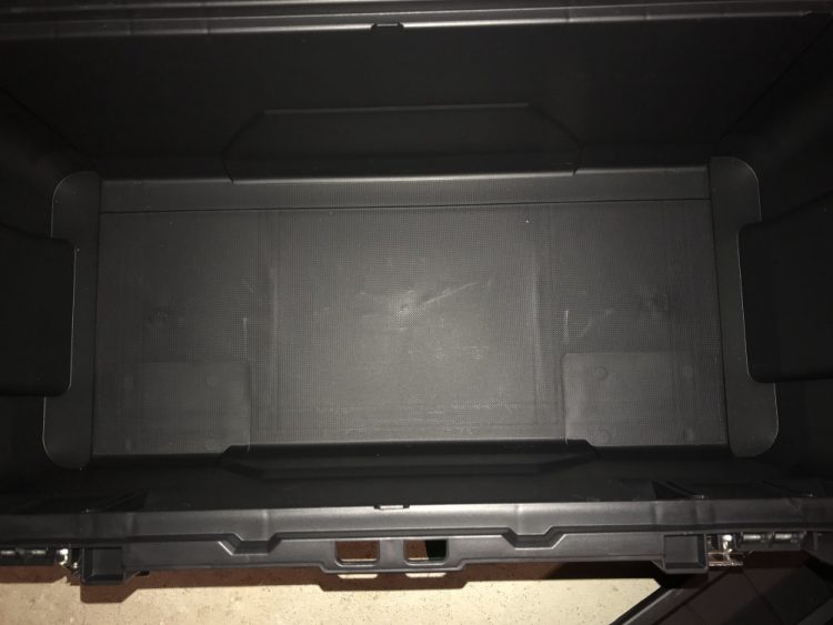 *I originally thought I’d drill through the sheet metal and bottom of the toolbox and fix the metal to the bottom using screws, nuts, and washers. However, I started questioning just how easy it would be to drill through the metal with my handheld drill, and ultimately, due to the flatness of the inside of my box, elected to just use really strong double-sided sticky tape. Screws would have done the job too, but if you’re unable to do that (or don’t want to) know that strong tape works just as well.