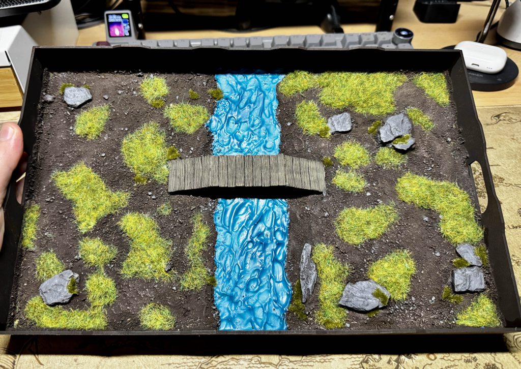 As great as all of that is we can do something a little more impressive and involved. So that's exactly what I did. I bought two of these trays with the idea of stacking them on top of each other before learning how well that hobby tray worked out. This one I wanted to go all-out with for something that looks a lot nicer to play on with a river right down the middle for some interesting gameplay. Rivers slow down your guys a bit, not allowing 6's to be used to move across them; naturally a bridge for duels would be needed for epic moments (or very frustrating ones).