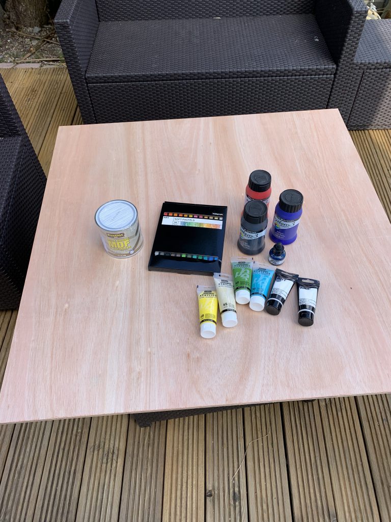Something to note before you start: Be very sure of the size of board you want - resin pours are pretty permanent. I settled on 1m by 1m, not really thinking too hard about the implications for game boards that are mostly in Imperial units. In retrospect I should've opted for either 3' by 3' or 4' by 4'. With space being a consideration, and if I was doing all this again, I'd go with a 3' by 3' board. The minimum thickness you want for your baseboard is 12mm, either MDF or plywood - any less and you'll risk sagging or warping once the resin is on. While the pour was only going to be a couple of milimetres thick, I wanted to add a decent border to the piece, opting for 18mm by 28mm planed square edged whitewood.