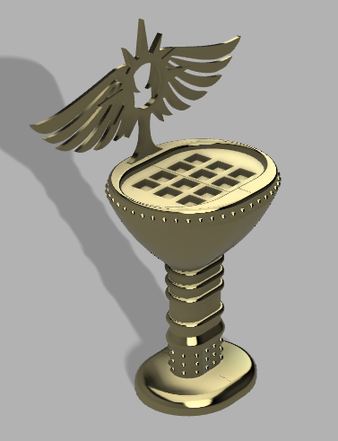 The goal here was an absolutely over-the-top ornate design with a chalice style which I think was achieved, but there are a few design flaws that kept this from ever being a viable design.