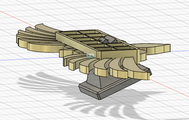 The assembly tool in Fusion is a handy way to test fit the alignment and orientation of multiple parts, and can even animate the joints should you need that for whatever reason, or if you just want to mess around with cool animation stuff. In this case, it helps us double check one very important issue - do we have enough height on the plinth to keep the dice holder fully elevated on the tabletop, or will the wings hit the surface?