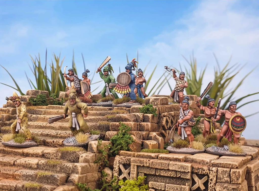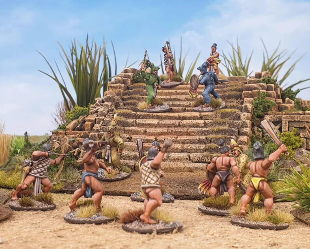 We'll start by diving into the history of the Flower Wars, and also looking at the Aztec Warriors kit from Wargames Atlantic, which they have kindly provided several of to us for this project. We'll then start sketching out the basics of how the game works to get a version to table as quickly as possible, and when we're happy with the direction we'll get a first playtest draft together. That'll be play tested internally first, and then when we're happy with the revised draft we'll throw it open for feedback from our patron and community. When we're happy with the game it'll get written up and laid out as a PDF and we'll host it on the site for you all to download.