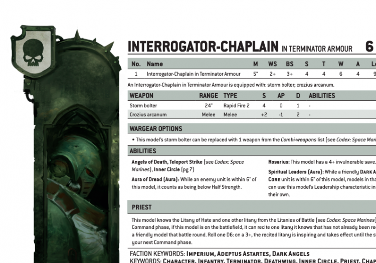 The Interrogator-Chaplain in Terminator Armor has been moved back to the HQ slot, via the shield on the datasheet now showing the correct emblem.